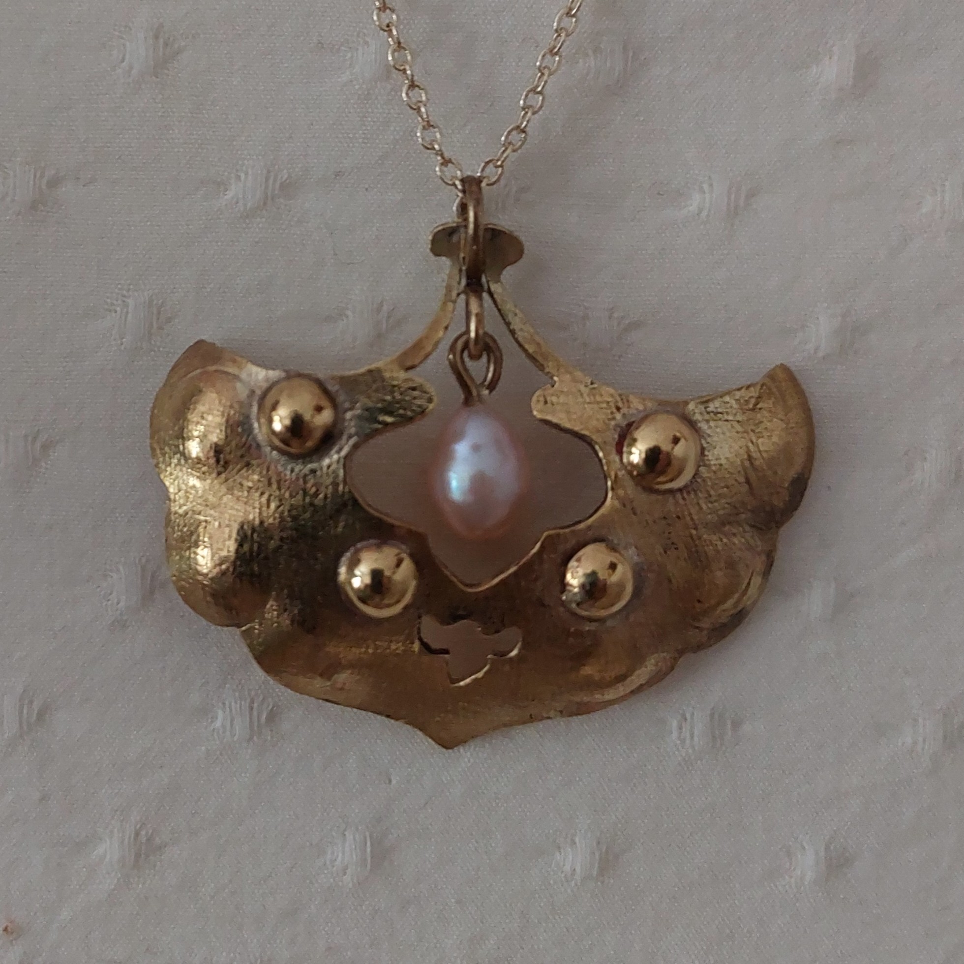 elkesimi pirinç kabartılmış ve inci sallantılı zamansız kolye