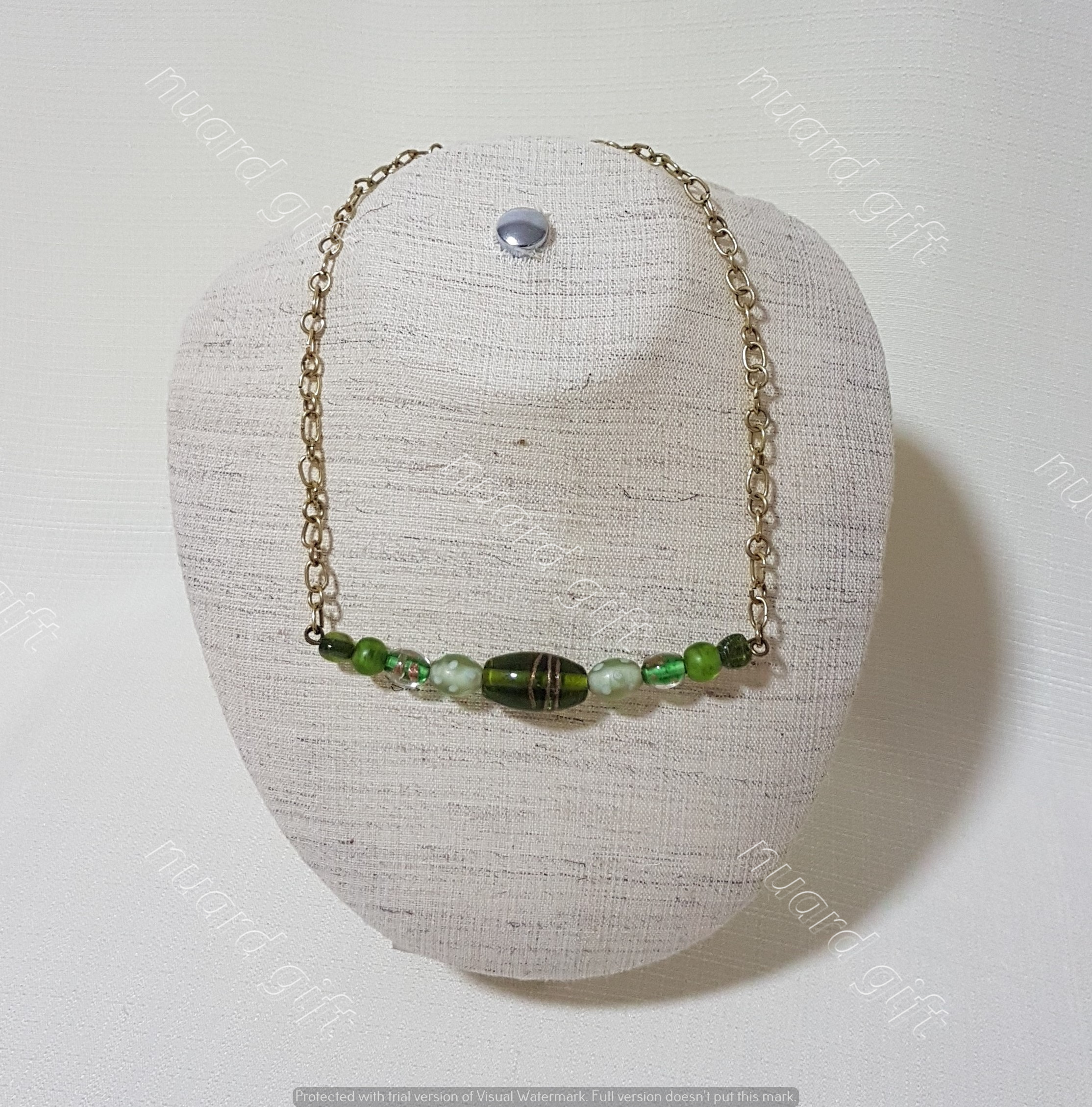elisi yesil cam boncuk ve altin kaplama zincir kolye